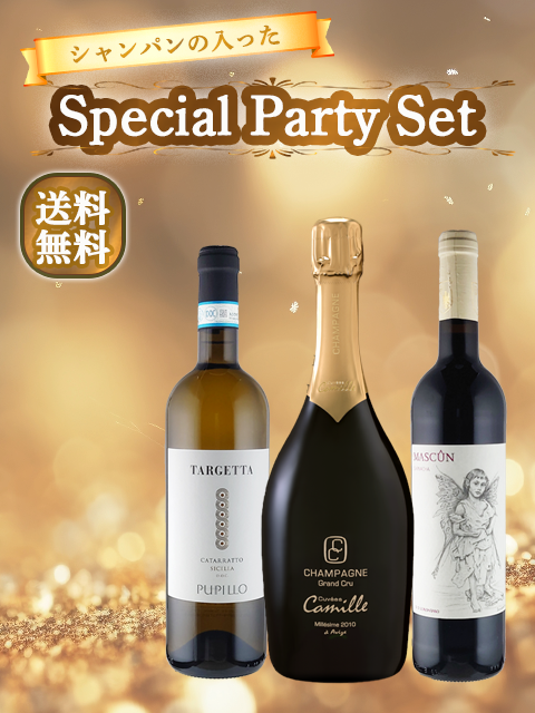 シャンパーニュ・赤ワイン・白ワイン3本セット。